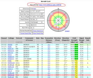 After you generated the final report, take notice of and bookmark the "Sharable Link". This link can be found toward the top of the report. See the forth and fifth photo, from the top, located to the right. You can use this link, at any time, to revisit your report without having to do steps 1 thru 3 again. This link is also used to post into online discussion groups when asking for TV antenna advice or advice on any other over-the-air topic. Almost all discussion groups will ask you to "post your Rabbitears report". Simply post the "Shareable Link" and everyone within the online group can view your Rabbitears report and provide the help you are requesting.